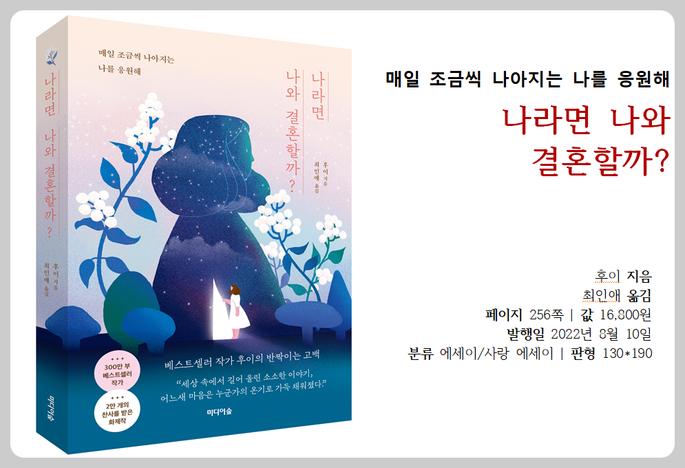 "살다 보면 생각지도 못한 시기에 예상치도 못한 곳에서 진짜 인연을 만난다. 그러니 떠나간 옛사람이 아니라, 다가올 그 사람을 위해 지금의 나는 준비해야 하지 않을까? - 나라면 나와 결혼할까? 중에서 -