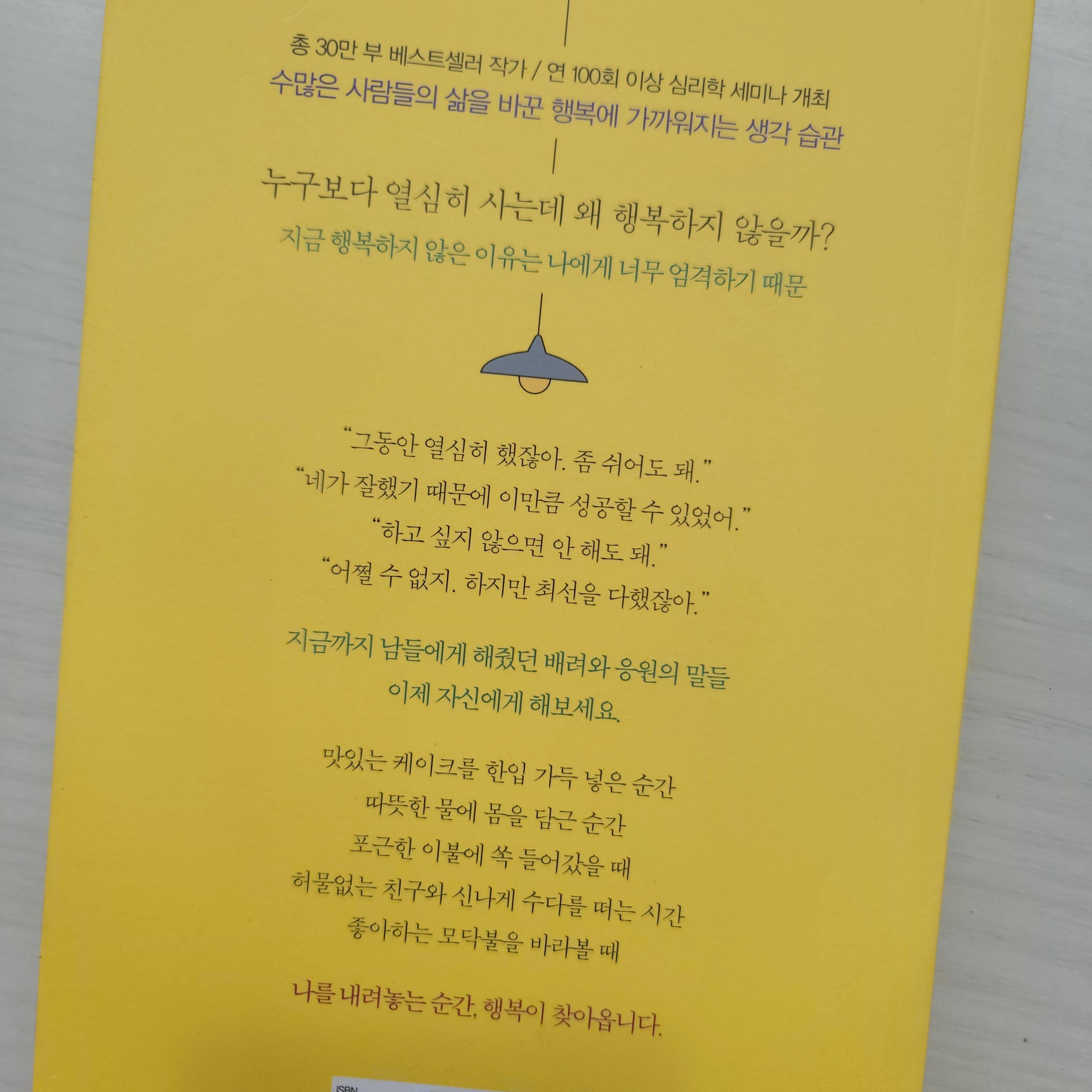 나에게 엄격했을 때, 다른 사람과 비교할 때 찾아오는 번아웃, 방황 등을 경험했을 것이다. 우연한 기회에 접하게 된 "나를 내려놓으니 내가 좋아졌다" 자기 계발 책으로 분류가 되지만 잔잔한 한 편의 시처럼 다가온다. 나 답게 행복하게 살아가기 위한 그리고 나를 나 스스로 소중히 여길 수 있게끔 힘을 불어넣어 준다.