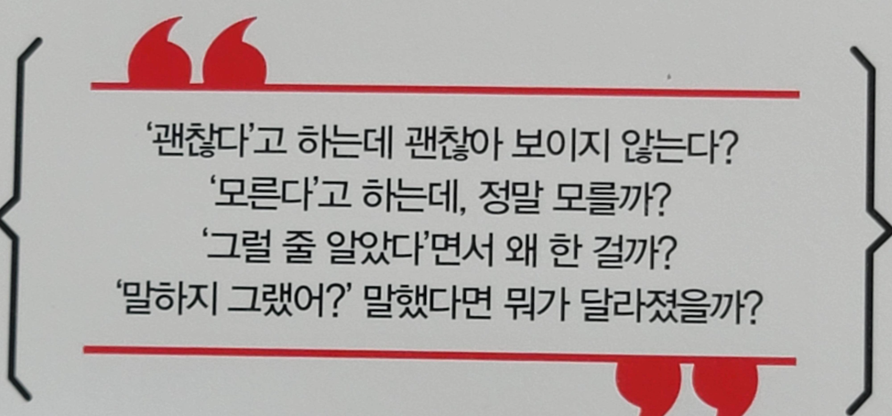 "말의 진심"을 읽으면서 거의 달 알고 있었다고 생각했던 말을 통한 상대의 진심. 그렇지만 뭔가 석연치 않았던 것을 명확히 알 수 있었다. 깔끔하게. 정리가 된 것이다.