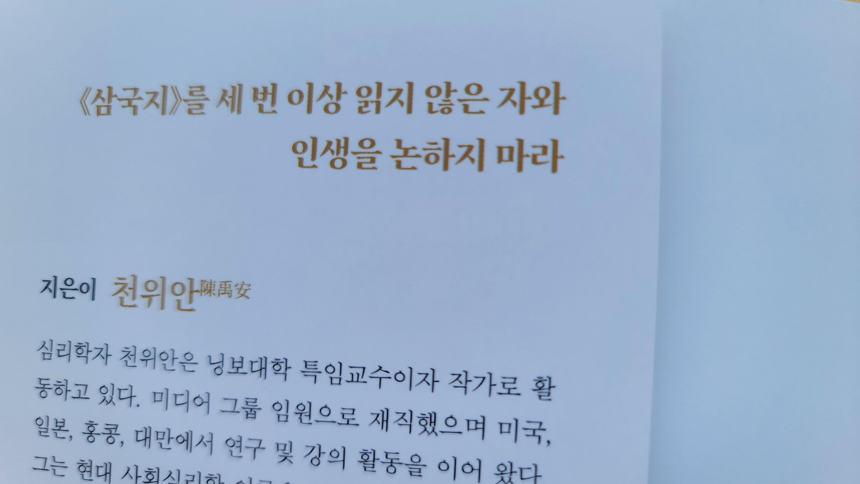 삼국지를 세 번 이상 읽지 않은 자와 인생을 논하지 말라는 말이 있다. 지은이 천위안은 이천 년 훨씬 전의 인물들을 심리학의 측면에서 날카롭게 분석하고 있다.