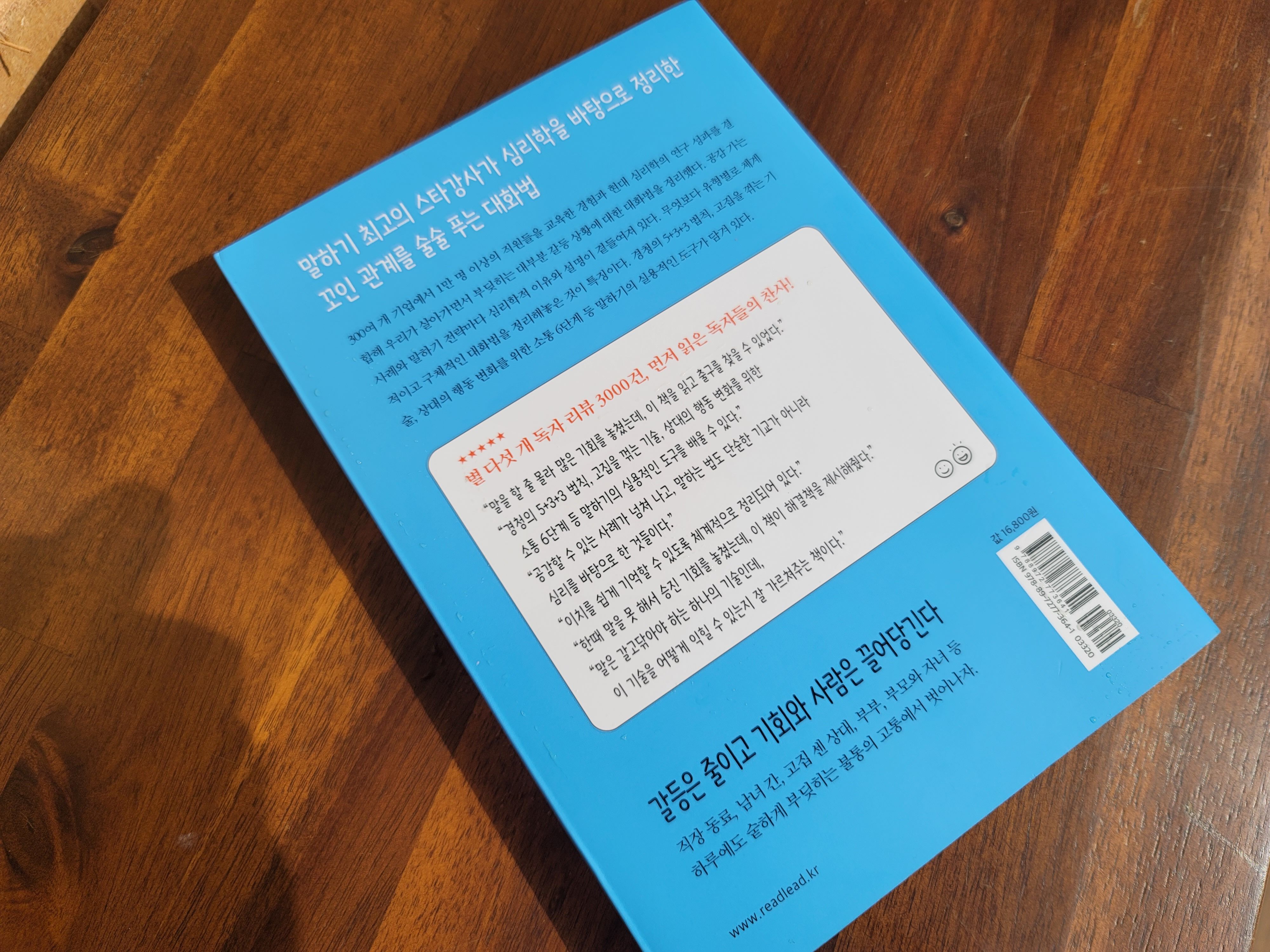 지은이는 중국의 장신웨. 하은지 님이 옮겼다. 자기 계발을 원하는 분들에게 꼭 읽어보라고 하고 싶다. 아주 약간의 차이가 큰 차이를 가져오는 대화하는 법이다.