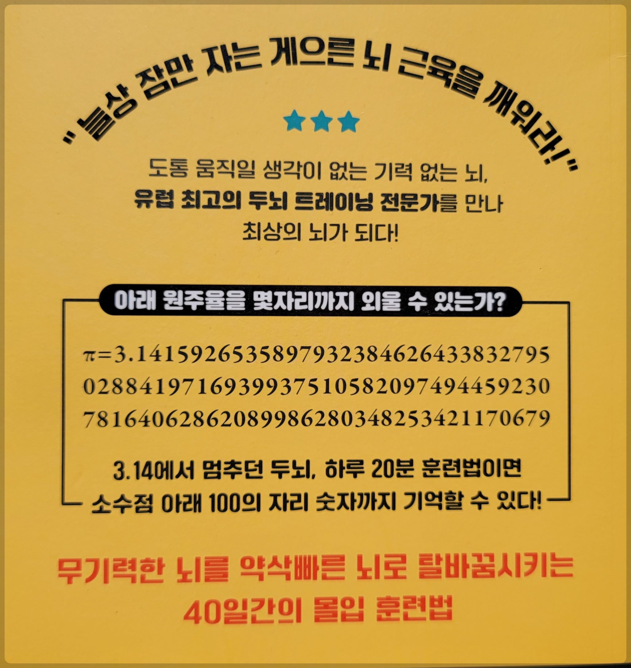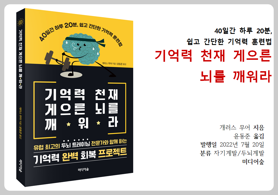 돌아서면 잊어버리는 나 자신을 위한 자기 계발서 "기억력 천재 게으른 뇌를 깨워라" 하루 20분 연습으로 40일을 연습할 수 있게 꾸며져 있다. 뇌의 다양한 부분을 각성시킨다.